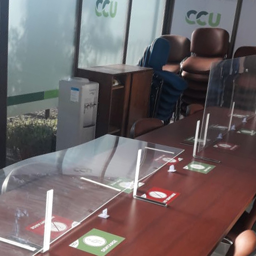 Estos son realizados para mesas de reuniones muy grandes. Por lo general tiene una longitud de 120 o hasta 160 cm de largo, sobre la cual se recomienda que se utilice otro separador extra para agregarle al tamaño. Estos van con cuatro soportes en “L” de 5 mm. Los soportes son con doble contacto y un tornillo de perforación para generar una fijación segura hacia el acrílico. El doble contacto va hacia la mesa, ya que no produce daño al momento de retirar y evitar perforaciones.