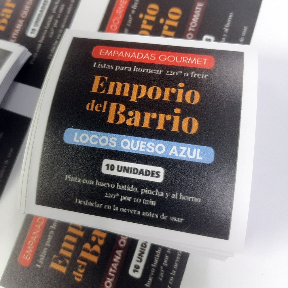 Es un adhesivo que se imprime en plotter. Tiene una menor resolución que la impresión offset o láser, sin embargo, contamos con máquinas de alta resolución. El PVC es más adherente y funciona mejor en sectores más complejos como refrigeradores, cajas de Kraft o exteriores. Si consideras colocar gráfica en tu producto, recomendamos este tipo de adhesivo.